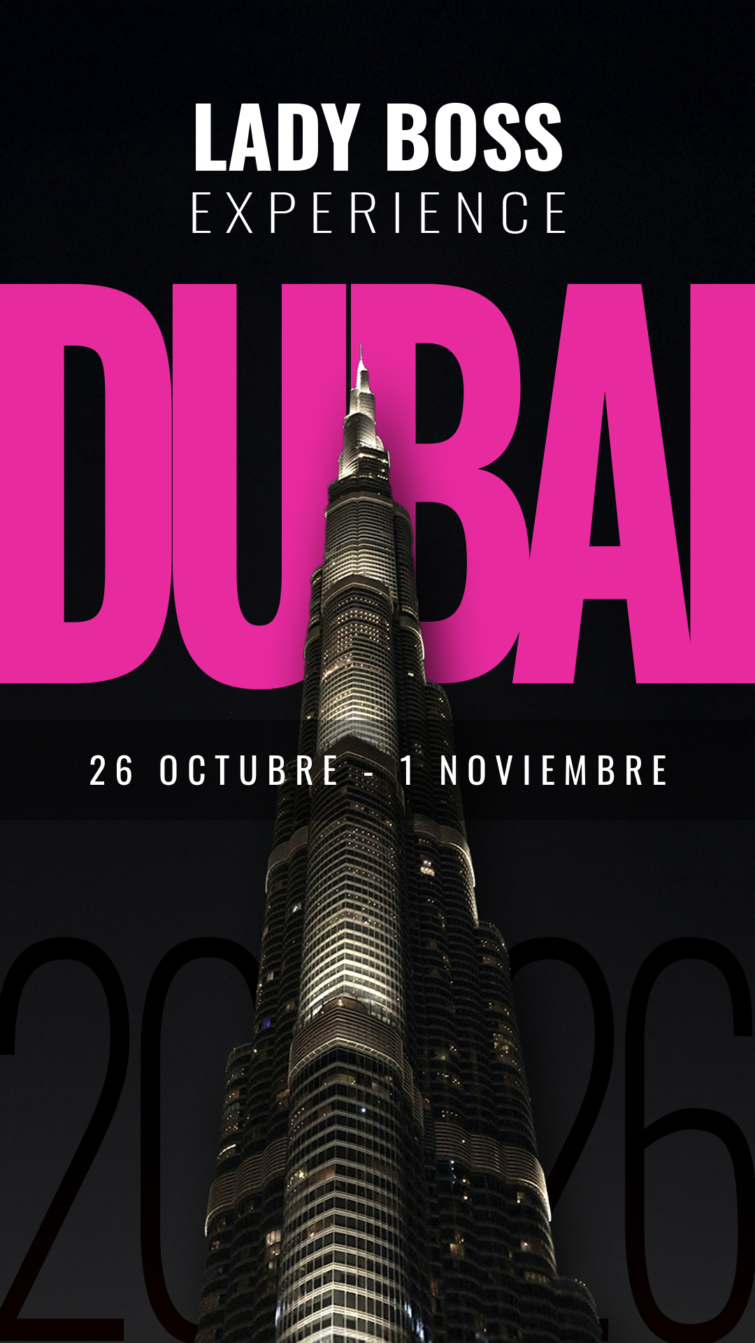 Durante 7 días en Dubái, vivirás una inmersión estratégica, emocional y empresarial junto a ponentes internacionales, actividades exclusivas y una comunidad de mujeres dispuestas a llevar su negocio al siguiente nivel.